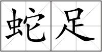 1.亦作"虵足"。 2.据《战国策.齐策二》载﹐数人相约﹐画地为蛇﹐先成者饮酒﹐一人蛇先成﹐因添画足而失其酒。后因以"蛇足"比喻多余无用的事物。