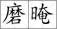 磨 : 磨mó摩擦:磨刀。磨墨。磨练。磨砺(摩擦使锐利,喻经受磨练)。磨合。研磨。磨漆画。阻碍,困难