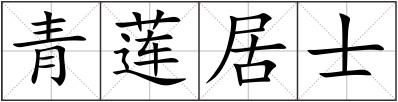 唐 李白 《答族侄僧中孚赠玉泉仙人掌茶》诗序:“后之高僧大隐,知仙人掌茶,发乎 中孚 禪子及 青莲居士 李白 也。” 清 王琦 《李太白年谱》:“惊 姜 之夕,长庚入梦,故名 白 ,以 太白 字之。若 青莲居士 、 酒仙翁 ,又其所自号者。”亦省称“ 青莲 ”。 宋 陆游 《感兴》诗:“ 离堆 太史公 青莲 老先生。” 清 陈康祺 《郎潜纪闻》卷四:“譬诸诗家, 鼎 其 青莲 ,而 翬 则 少陵 。” 郁达夫 《自述诗》之一:“删尽 定公 哀艷句,儂诗粉本出 青莲 。”