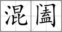 混 : 混hùn搀杂在一起:混杂。混和。混同。混淆。混为一谈。乱,胡乱:混乱。混世魔王。蒙,充:蒙混