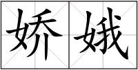 娇 : 娇(嬌)jiāo美好可爱:娇儿。娇女。娇艾(年轻貌美的女子)。娇娆。娇艳。娇嗔。娇逸(潇洒俊美