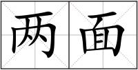 两面 [liǎng miàn]指古代神话中“两面人”的两个面孔,借指两面人。
