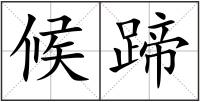 候 : 候hòu等待:等候。候车室。候选人。守候。候补。候场。候审。候诊。看望,问好:伺候。问候。时
