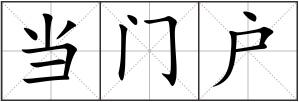 唐 张籍 《筑城词》:“家家养男当门户,今日作君城下土。” 唐 刘禹锡 《唐故邠宁庆等州节度观察处置使赠右仆射史公神道碑》:“僕射之丧,自復魄至葬,当门户,备祭祀,建碑表,皆县君之能。” 元 关汉卿 《蝴蝶梦》第二折:“大哥孝顺识亲疏,二哥留下着当门户,第三个哥哥休言语,你偿命正合去。”