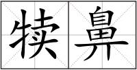 鼻 : 鼻bí嗅觉器官,亦是呼吸的孔道:鼻子。鼻窦。鼻孔。鼻腔。鼻涕。鼻音。鼻烟(由鼻孔吸入的粉末状?