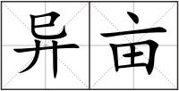 异 : 异yì不同的:异乎。异说。异常。异己(与自己意见不同或利害相冲突的人)。异端(旧时指不符合正?