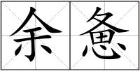 余 : 余(②余⑤餘)yú我:“余将老”。剩下来的,多出来的:剩余。余粮。余兴。余悸。余孽。节余。?