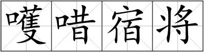 嚄唶 : 1.大声呼叫。形容勇悍。 2.借指勇悍之士。 3.震惊貌。 4.多言;大声谈论。形容不知顾忌或意气飞扬。