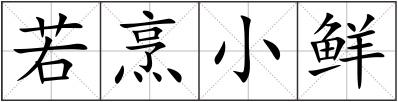 若烹小鲜 [ruò pēng xiǎo xiān]意为治理大国要像煮小鱼一样。煮小鱼,不能多加搅动,多搅则易烂,比喻治大国应当无为。后常用来比喻轻而易举。
