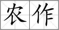 农 : 农(農)nóng种庄稼,属于种庄稼的:务农。农业。农田。农产。农垦。农家。农忙。农民。农妇。农