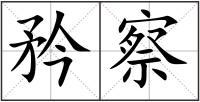察 : 察chá仔细看,调查研究:察看。察核。观察。考察(a.实地观察调查,如“科学察察”;b.细致深刻地