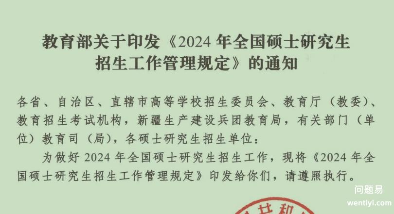 根据《2024年全国硕士研究生招生工作管理规定》,现将2024年全国硕士研究生招生考试有关事项公告如下: