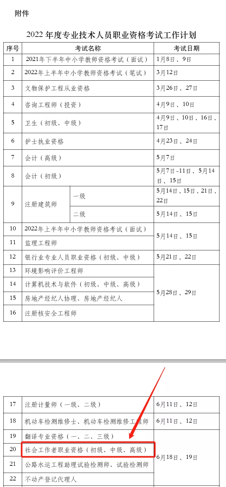 根据《人力资源社会保障部办公厅关于2022年度专业技术人员职业资格考试计划及有关事项的通知》(人社厅发〔2022〕3号)有关安排,2022年度社会工作者职业资格考试于6月18日、19日举行,考试形式为纸笔考试。