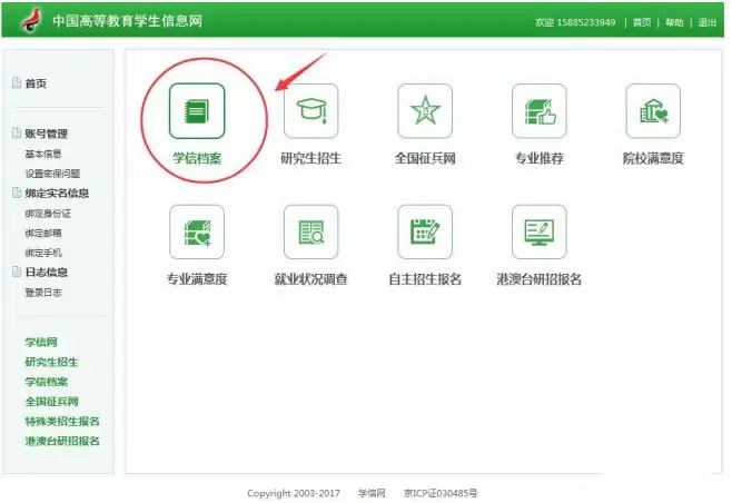 l 点击“学信档案”查询学籍