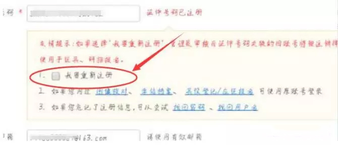 三、身份证号已经注册过的,请选择“我要重新注册”(如下图)。