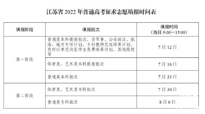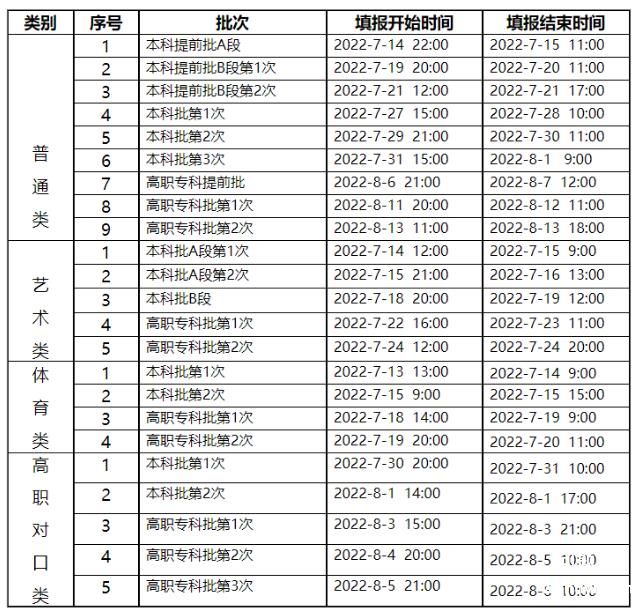 7月22日至7月23日,考生填报艺术类及体育类本科批次、普通本科批次A阶段征询志愿。