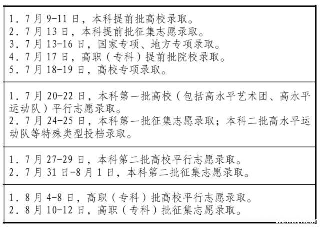 (1)第一阶段录取:8月7日至8月9日11:00。