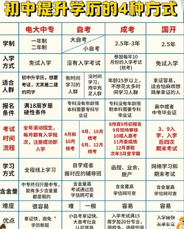 初中生提升学历三种方法对比