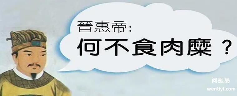 有一年发生饥荒,百姓没有粮食吃,只有挖草根,吃树皮,许多百姓因此活活饿死。消息被迅速报到了皇宫中,晋惠帝坐在高高的皇座上听完了大臣的奏报后,大为不解。善良”的晋惠帝很想为他的子民做点事情,经过冥思苦想后终于悟出了一个解决方案,曰:百姓无粟米充饥,何不食肉糜?”(百姓肚子饿没米饭吃,为什么不去吃肉粥呢?)