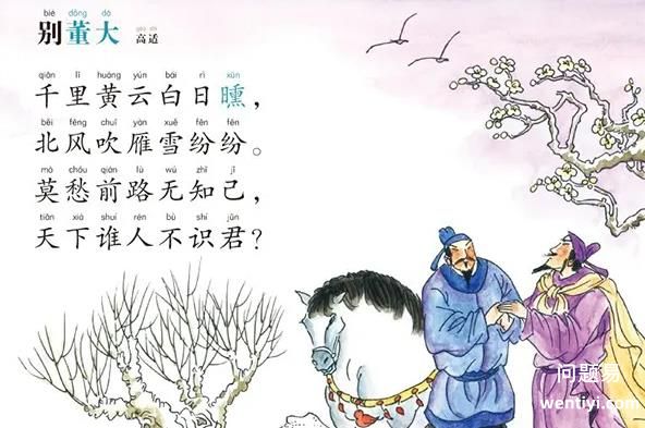 《别董大》中别是送别的意思,董大指董庭兰,是唐代当时有名的音乐家,在其兄弟中排名第一,故称董大”。