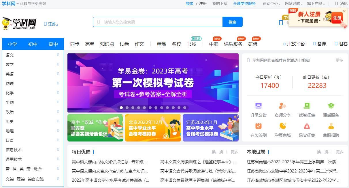 2.、学科网全新升级资源查询层面:名校资源、初中升高中资源、今年高考资源、教材内容同步资源、知识要点资源一应俱全;