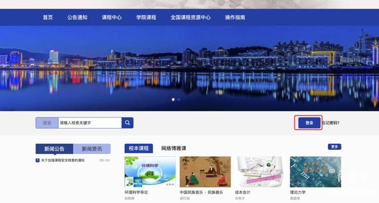 1.打开学校网络教学平台网址(具体参考学校),点击“登录”。输入帐号密码进行登录
