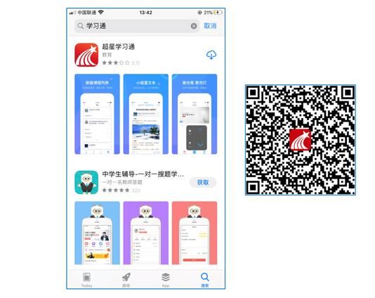 学生可在手机应用市场搜索并下载“学习通”,或直接扫如下二维码进行下载。
