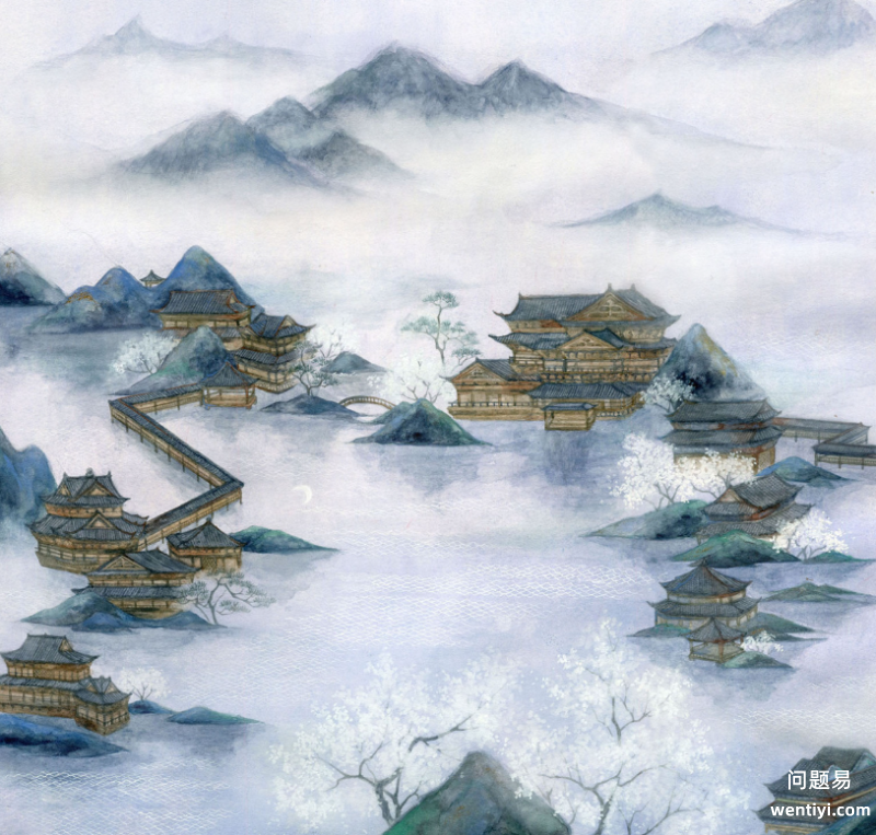 “危楼高百尺,手可摘星辰。”这两句是写山寺之高。第一句正面描绘寺楼的峻峭挺拔、高耸入云。发端一个“ 危 ”字,倍显突兀醒目,与“高”字在同句中的巧妙组合,就确切、生动、形象地将山寺屹立山巅、雄视寰宇的非凡气势淋漓尽致地描摹了出来。次句以极其夸张的技法来烘托山寺之高耸云霄。字字将读者的审美视线引向星汉灿烂的夜空,非但没有“高处不胜寒”的感慨,反给人旷阔感,以星夜的美丽引起人们对高耸入云的“危楼”的向往。