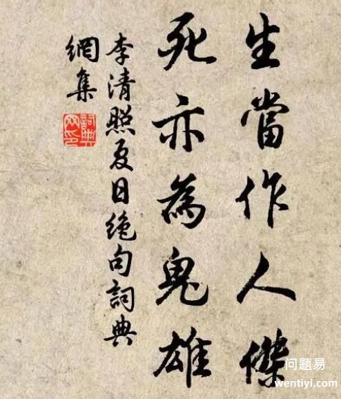 “生当作人杰,死亦为鬼雄”是宋代词人李清照写的,出自《夏日绝句》。这是一首借古讽今、抒发悲愤的怀古诗。全诗只有短短的二十个字,却连用三个典故,可谓字字珠玑,字里行间透出一股正气。