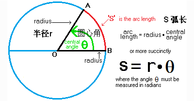 n是圆心角度数,r是半径,α是圆心角弧度。l=nπr÷180或l=n/180·πr或l=|α|r