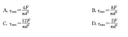 钢板用两个铆钉固定在支座上 铆钉直径为d 在图示荷载下 铆钉的最大切应力是: