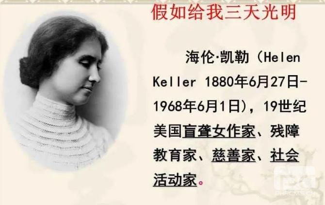 导读:《假如给我三天光明》主要讲述了又盲又聋的海伦凯勒坎坷的一生。她一生只有十九个月光明,在安妮莎利及其他老师的帮助关爱下,在亲朋好友的